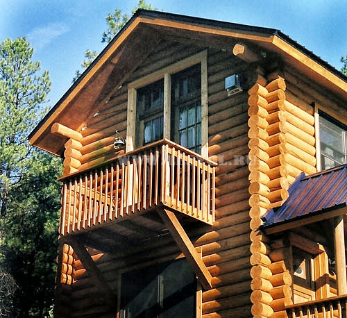 Внутренний балкон в деревянном доме - это не столько приложение к деревянному дому, сколько целый мир, в котором растут любимые цветы, хранятся теннисные ракетки, собирается домашний совет или любуются видами гости дома. Как может показаться, внутренний, то есть не выступающий из стены на опорных балках, балкон деревянного дома может выполнять прозаическую функцию неотапливаемого помещения с перилами, которое еще и "отбирает" у дома полезную площадь.