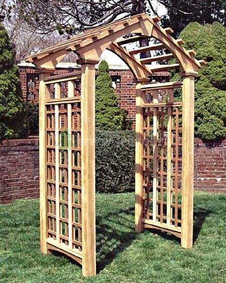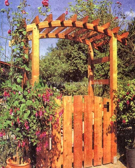 Арка представляет собой перекрытие, расположенное на двух опорных столбах. По форме арка может быть с плоской крышей, дугообразной, двускатной. Пергола состоит из нескольких арок, которые соединены между собой, вместе они образуют своеобразный навес над частью садовой территории.