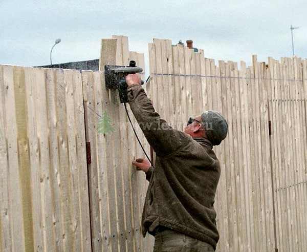 Грунт впоследствии уплотняется. Далее, по верхним торцам опор натягивается верёвка, при помощи которой контролируется уровень горизонтальных прогонов. После крепления последних, набиваются или прикручиваются штакетины, заранее украшенные фигурной резьбой. Штакетины крепятся на некотором расстоянии от земли и между собой. После необходимой обработки древесины защитными составами штакетник будет готов.