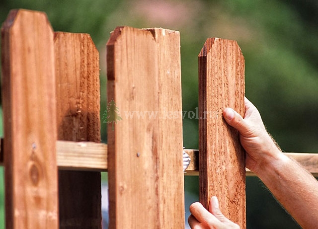 Деревянный забор является прекрасным дополнением для дома из бруса или бревенчатой усадьбы. Он гармоничнее смотрится, нежели каменный или кирпичный. Но, несмотря на все свои хорошие качества, такая изгородь служит относительно недолго. Жизнь такого сооружения продлевается при должном уходе за ним: дерево периодически обрабатывается различными пропитками, подкрашивается.