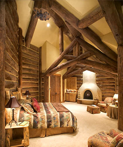 Можно применить в дизайне интерьера и современный стиль «модерн». Это когда в интерьере присутствуют большие внутренние пространства и нет привычного плоского потолка. Если предпочтения отдается гладким поверхностям, то вначале дерево закрывают современным отделочным материалом и только затем приступают к отделке помещения.