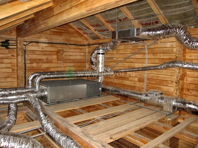 Оборудованная системой подогрева и охлаждения поступающего в дом воздуха, она позволяет контролировать его температуру. Такая вентиляция снабжается воздушными фильтрами. Для препятствия проникновению мелких животных и насекомых все вентиляционные отверстия закрываются металлическими сетками или решётками. Вентилирование деревянного дома , каждой его составной части, имеет некоторые особенности.