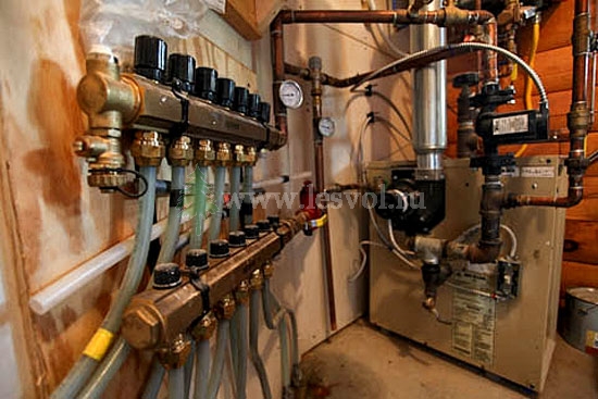 Местное и центральное водяное отопление. Главными частями системы при местном водяном отоплении являются: сеть батарей, котел, бак-накопитель либо конденсатор. Газ, уголь, дрова, нефть, а также торф могут использоваться как топливо в такой системе. Центральное отопление применяется при строительстве деревянного дома в населенных пунктах, при этом вместо котла используют теплообменник.