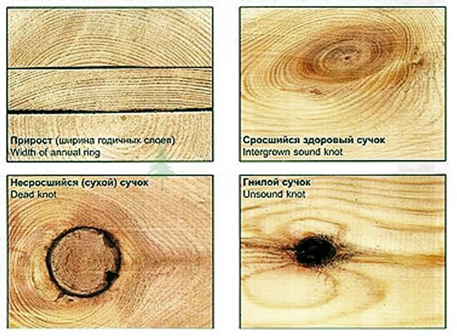 Дефекты древесины понижают прочность и декоративность древесины. К порокам относятся сучки, неровность ствола, наросты и развилки по его длине.