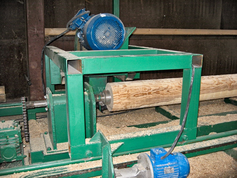 На станках токарного типа ствол вращается вокруг своей оси и резец станка снимает лишнюю древесину под необходимый диаметр. При производстве бревен на роторном станке, заготовка, напротив, совершенно неподвижна и обработка осуществляется оцилиндровочными шпинделями. Роторные станки бывают не только позиционные, но и проходные. В данном случае резец-шпиндель неподвижен, а бревно вальцами протаскивается через него, срезая лишнюю древесину.