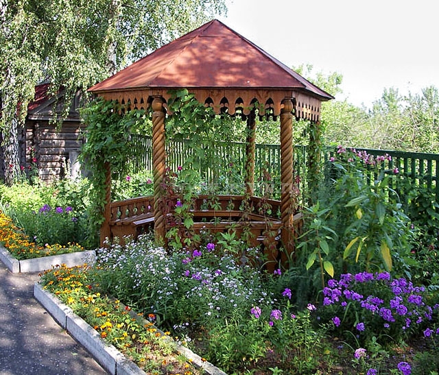 Современные деревянные дома очень уютны и красивы. Но в качестве функционального дополнения для отдыха как нельзя лучше подходит беседка. Ну, а если основное строение деревянное, то и беседку также сооружают из того же материала, тогда она прекрасно впишется в ландшафт.